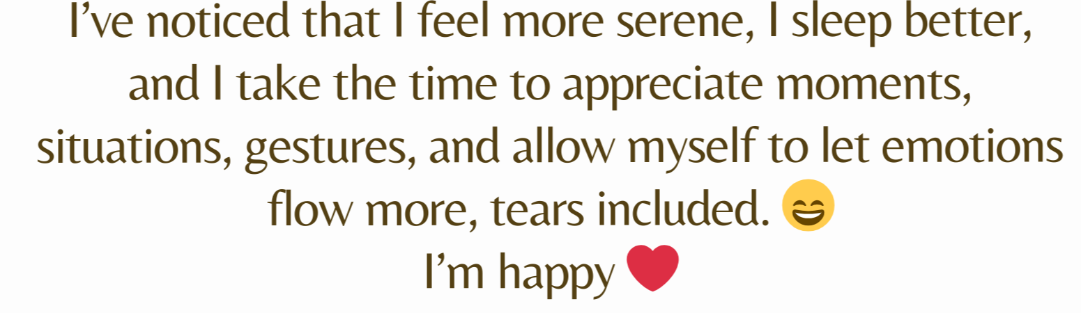 We will send you a few informative emails (please take the time to read them) and contact you by phone to explain the details and determine together whether this journey is the right fit for you at this moment in your life.